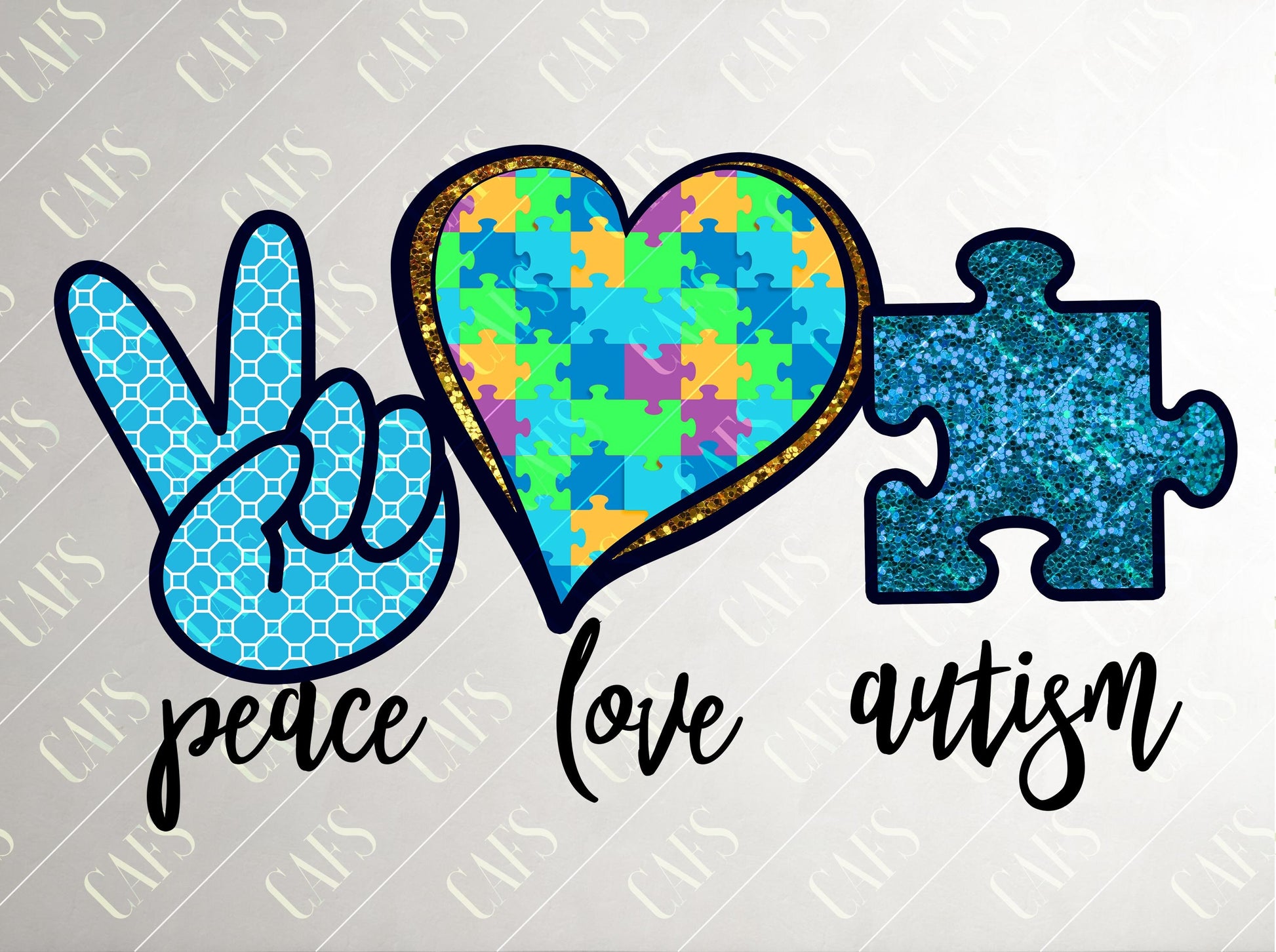 Sublimation Design Peace Love Autism Sublimation Design Template Digital AUTISM Design PNG Sublimation Design PNG Autism Blue Design Mug