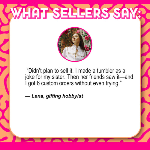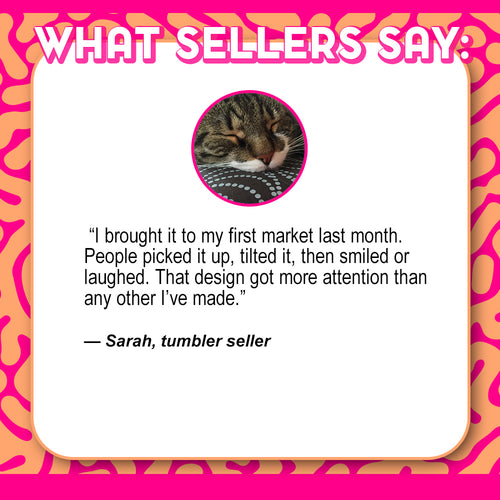 “I listed one design and sold three tumblers in the first hour. People couldn’t stop talking about the message. Instant hit.” -