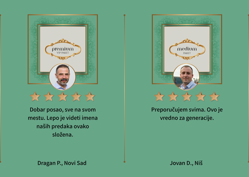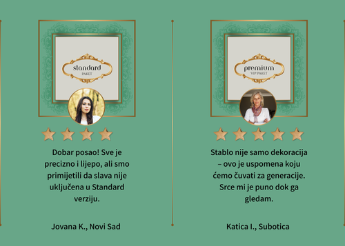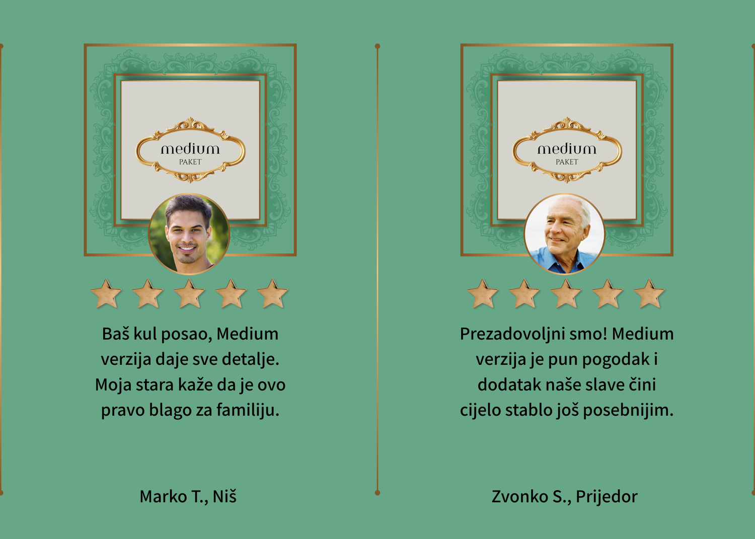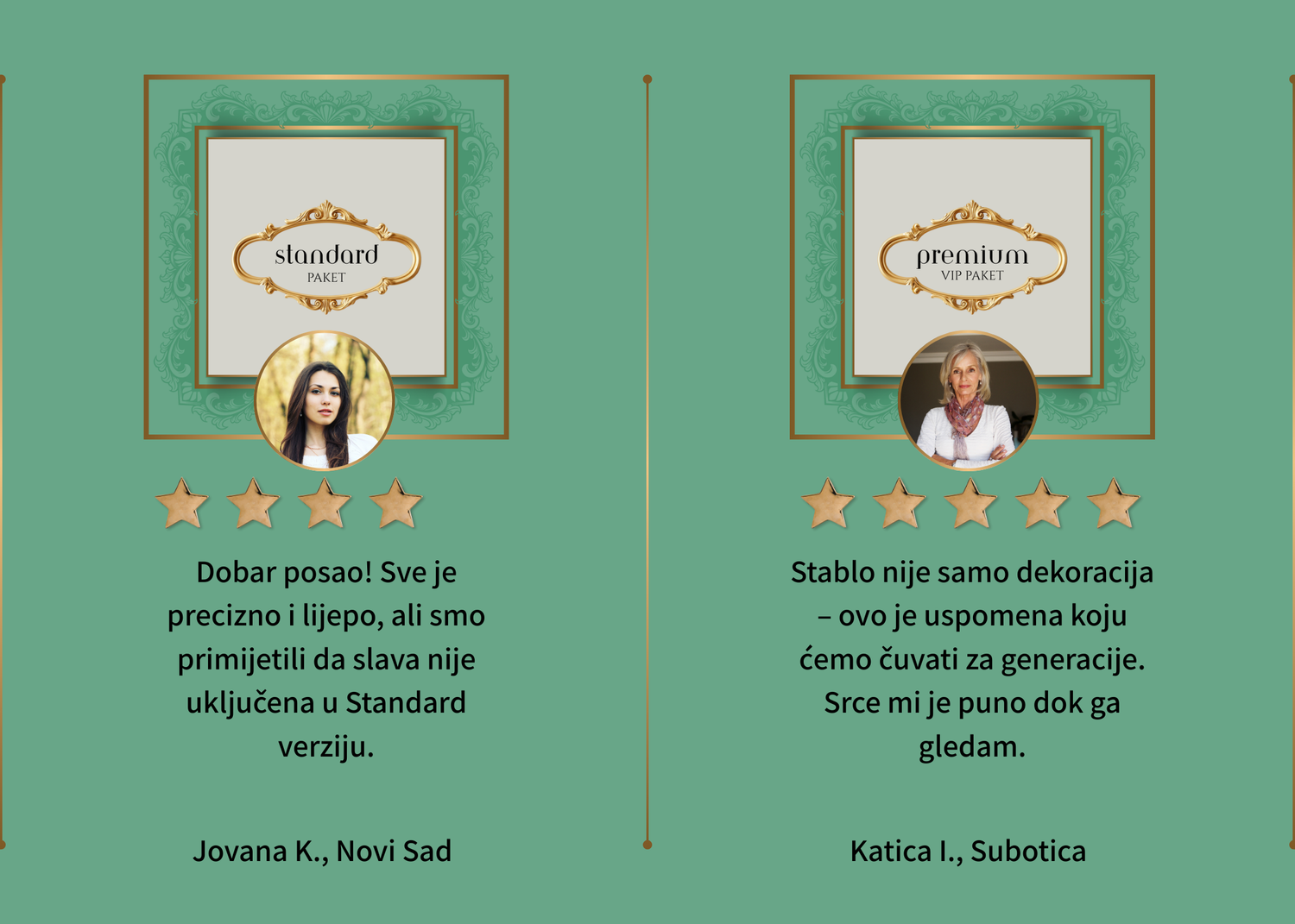 VIP PREMIUM PAKETEkstra ekskluziva: prioritetna izrada, napredna personalizacija, dodatni vizuelni elementi, više verzija i besplatne manje izmene u budućnosti.