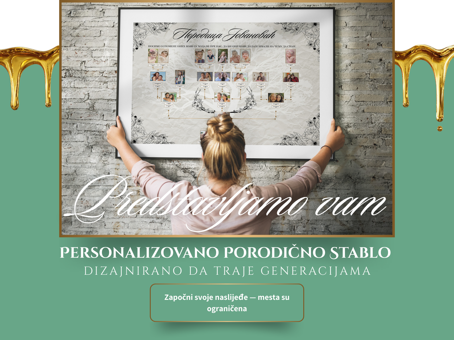 Vaša imena, datumi, porodične grane, sve je prilagođeno tako da predstavi upravo vaš rod.