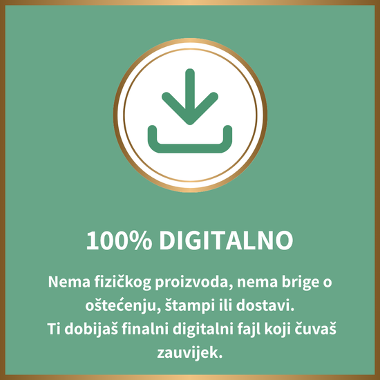 Dobijate finalni digitalni A0 fajl (118.9 cm x 84.1 cm) u vrhunskom kvalitetu, spreman za: