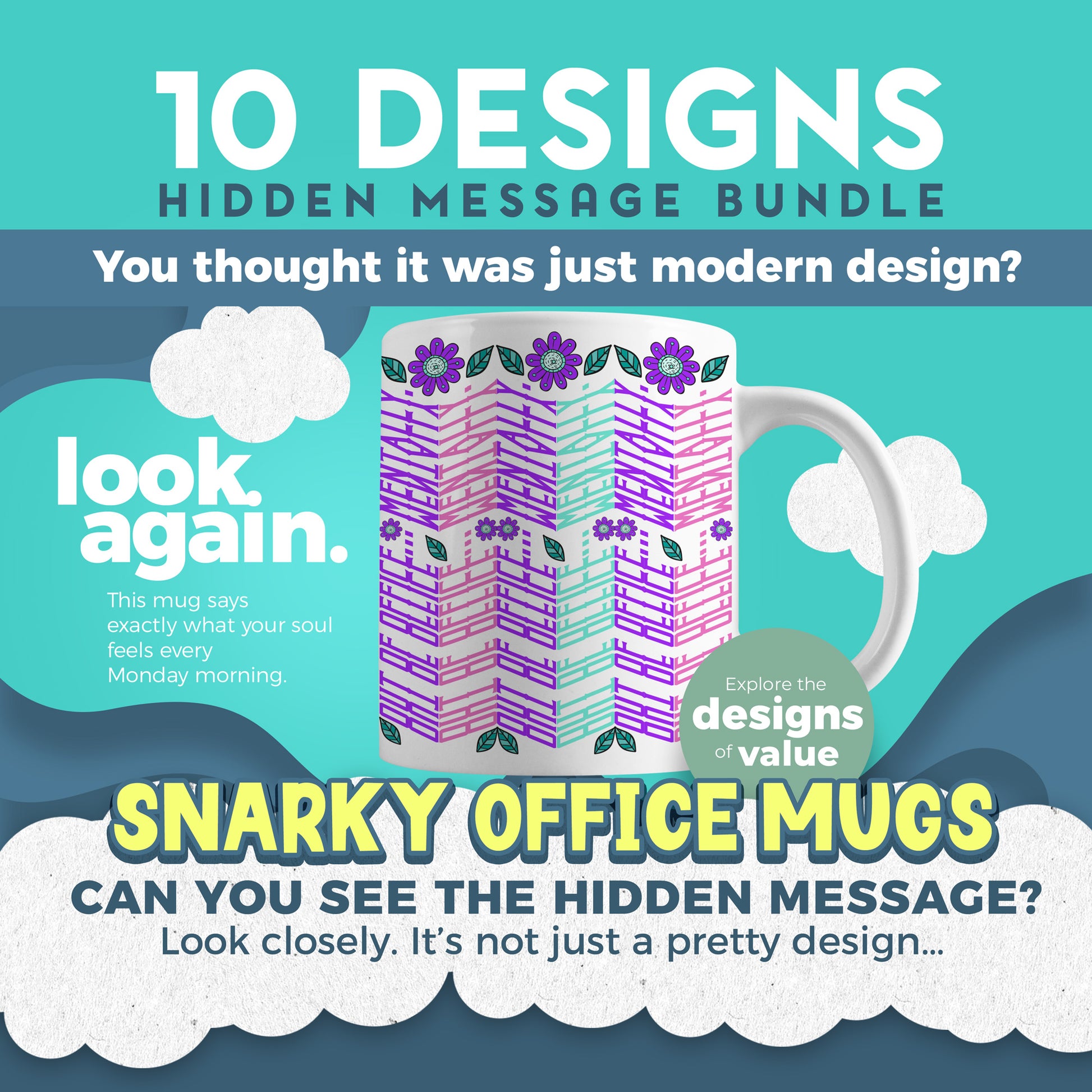 10 Designs Bundle Hidden Message Geometric Mug Design | Snarky Office Hidden Message PNG SVG for Sublimation & Cricut