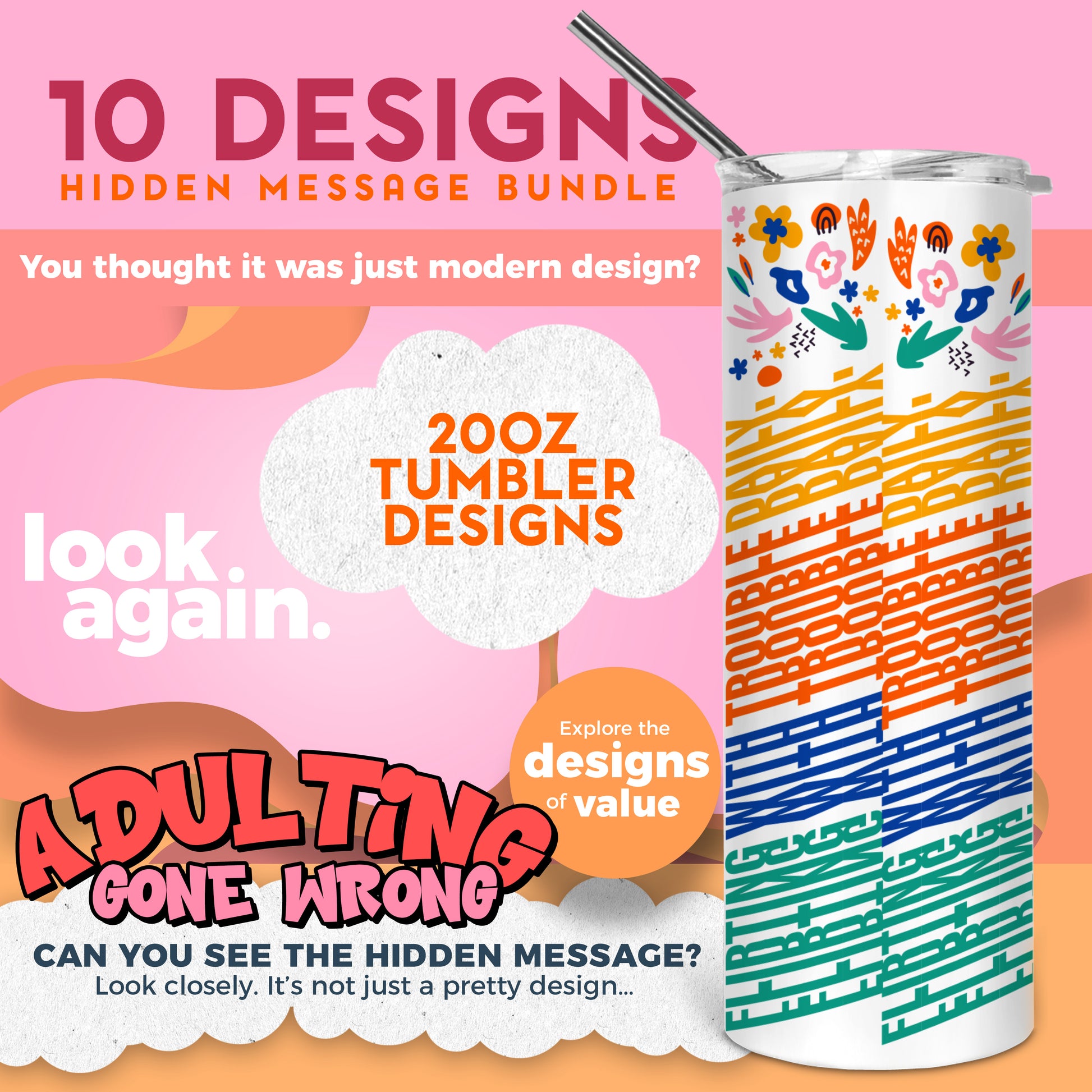 10 Designs Funny Adulting Gone Wrong Bundle Hidden Message Geometric 20 oz Tumbler | Hidden Message Funny Adulting Gone Wrong PNG Funny Marriage SVG for Sublimation & Cricut