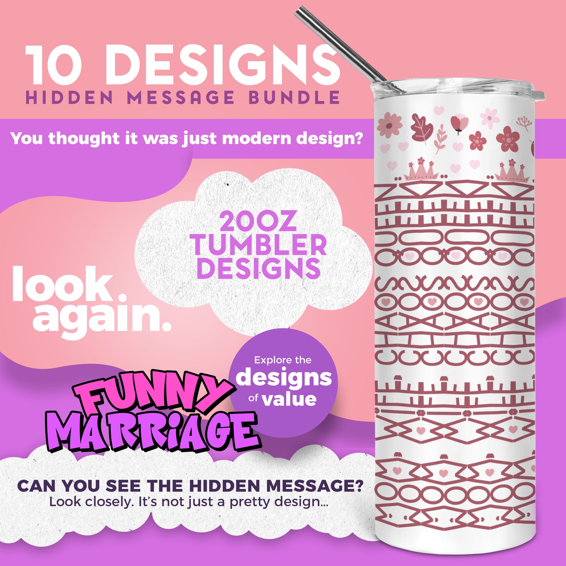 10 Designs Funny Marriage Bundle Hidden Message Geometric 20 oz Tumbler | Hidden Message Funny Marriage PNG Funny Marriage SVG for Sublimation & Cricut