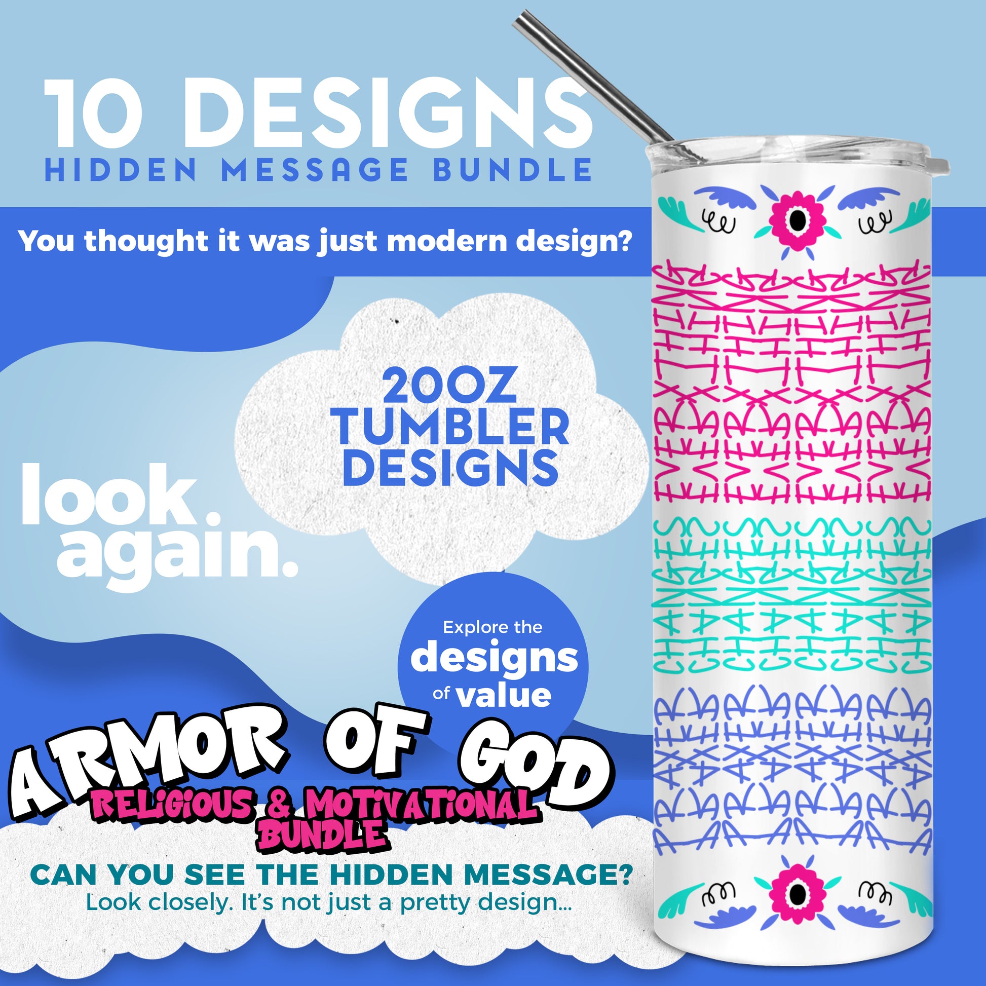 10 Designs Religious Motivational Bundle Hidden Message Geometric 20 oz Tumbler | Hidden Message Halloween PNG Religious SVG for Sublimation & Cricut