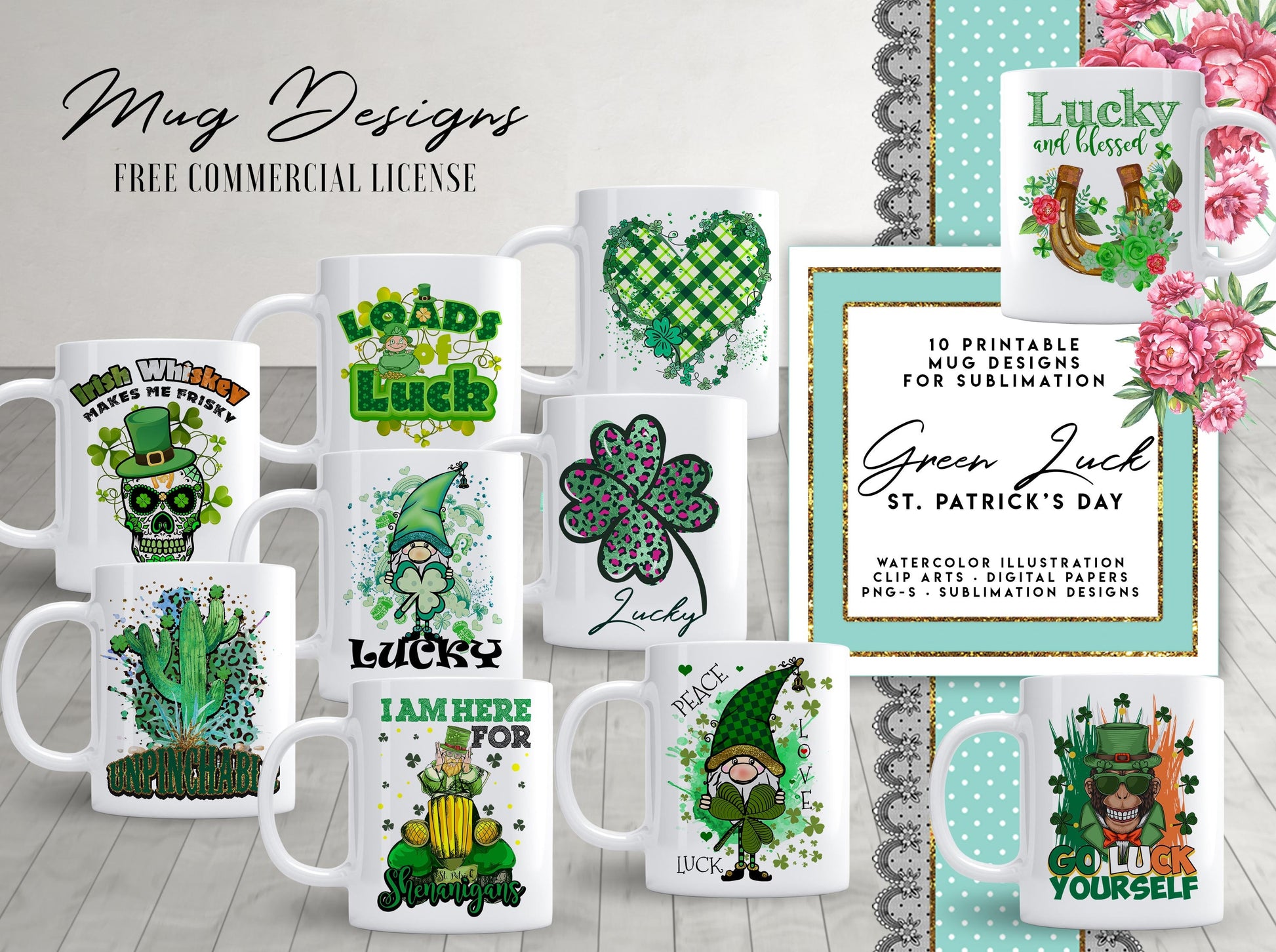 10 St Patrick Day Mug Template Designs for Sublimation Printing Shamrock St Patricks Day Mug Luck Shamrock St Patrick Day Mug Design Graphic