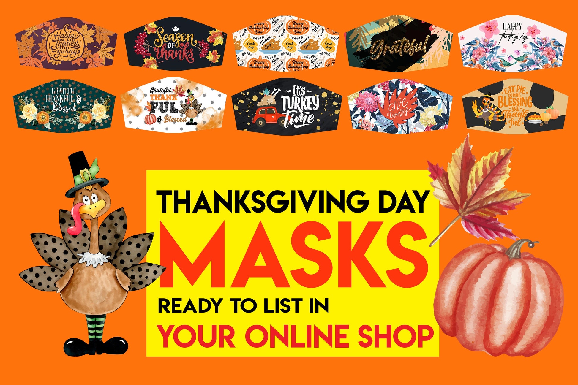 10 Thanksgiving Day Face Mask Designs Facemask Sublimation Design Template Png Design