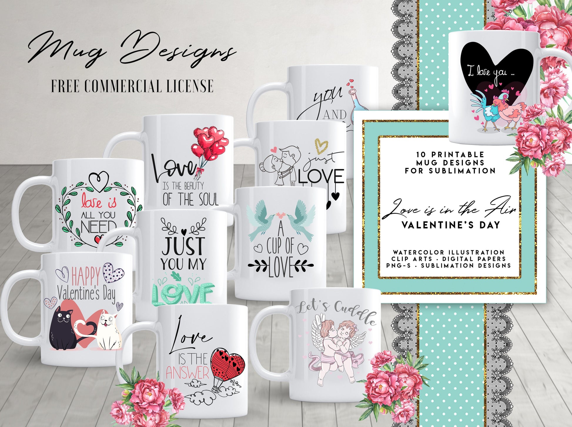 10 VALENTINES DAY Mug Template Designs for Sublimation Printing Happy Valentines Day Mug Girlfriend Boyfriend Gift Valentine's Day