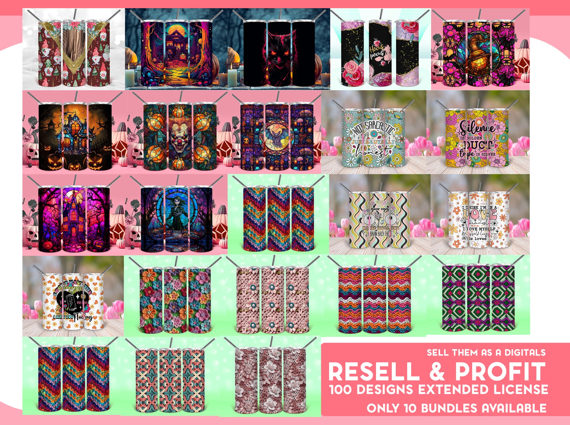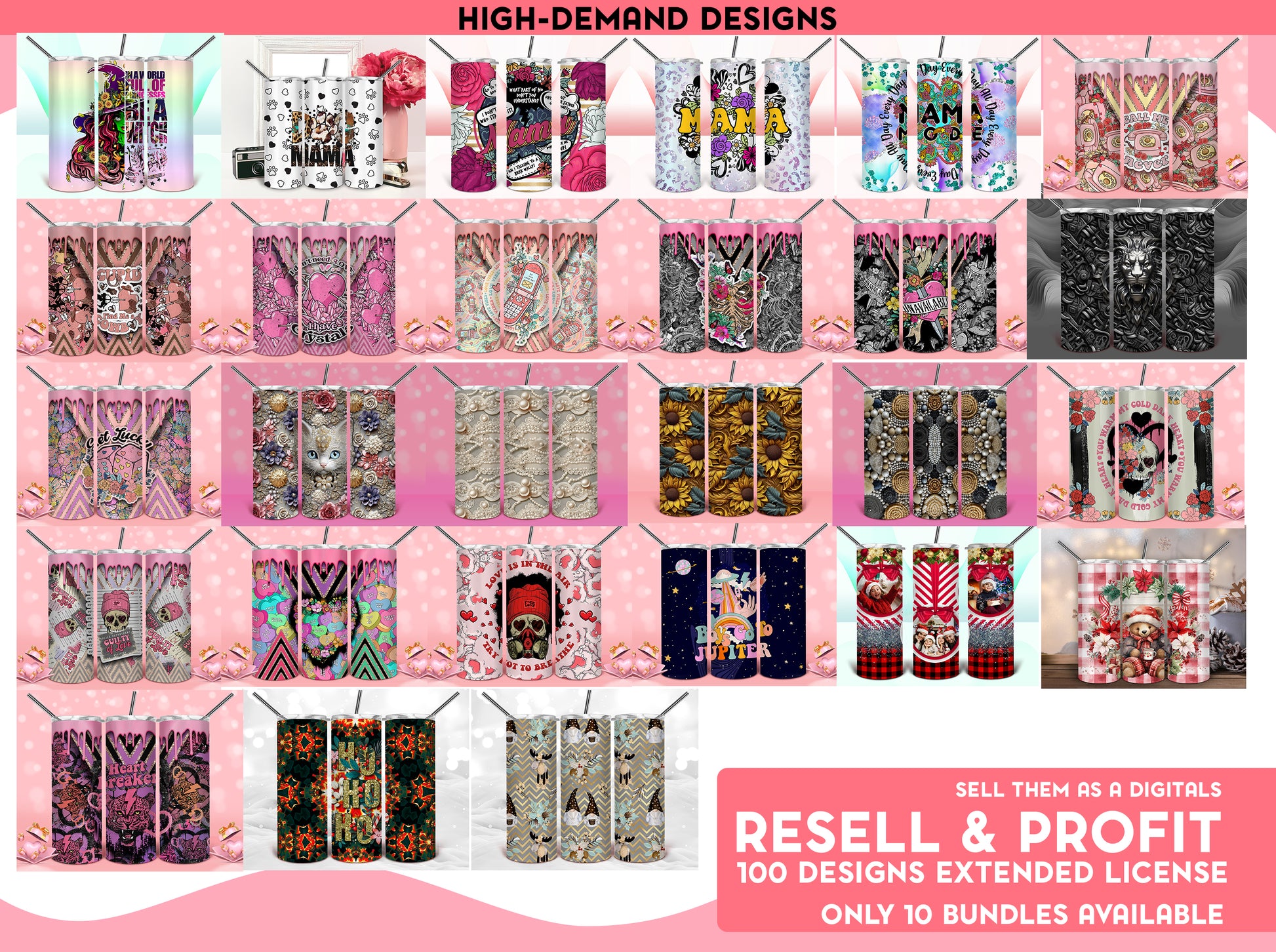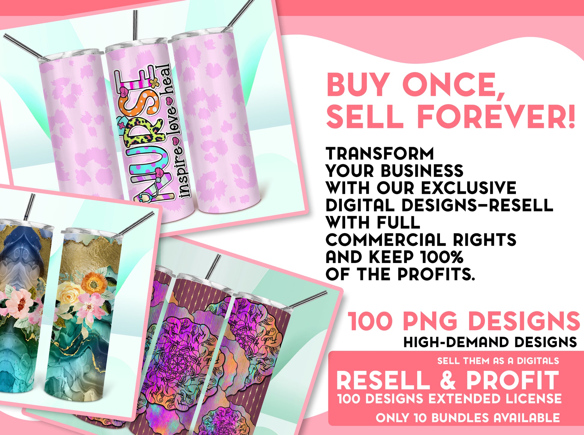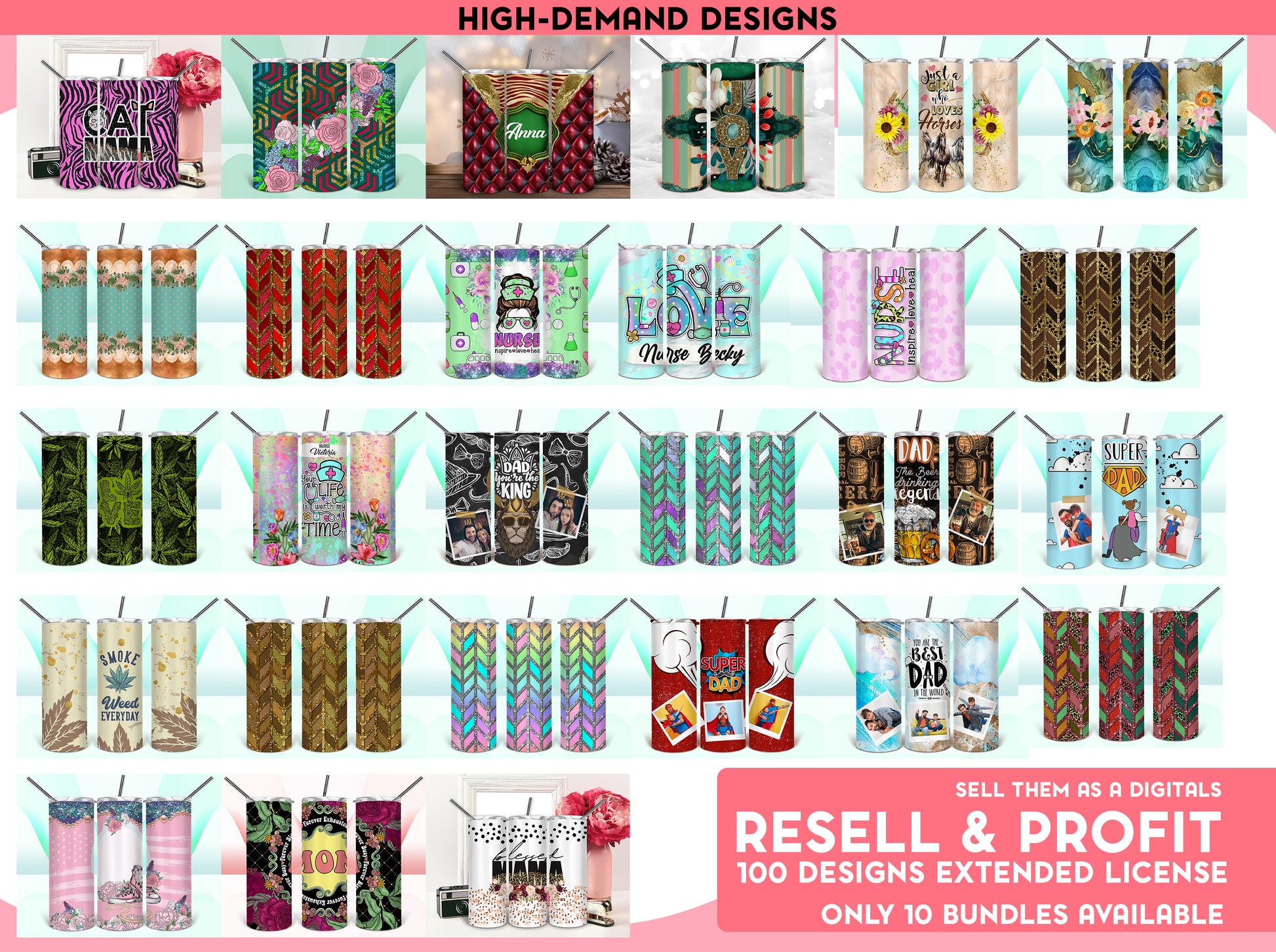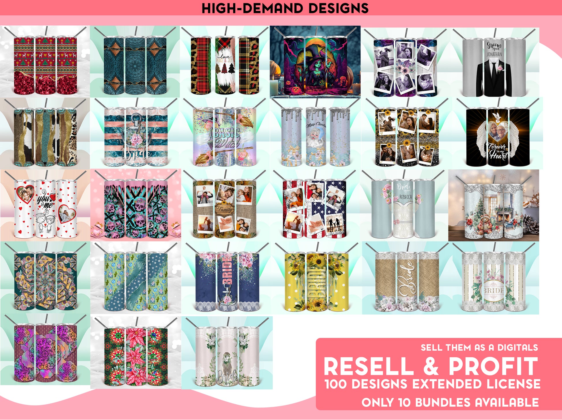 100 designs Exclusive Bundle Tumbler Digital Designs with full commercial License you can resell as a Digital Files