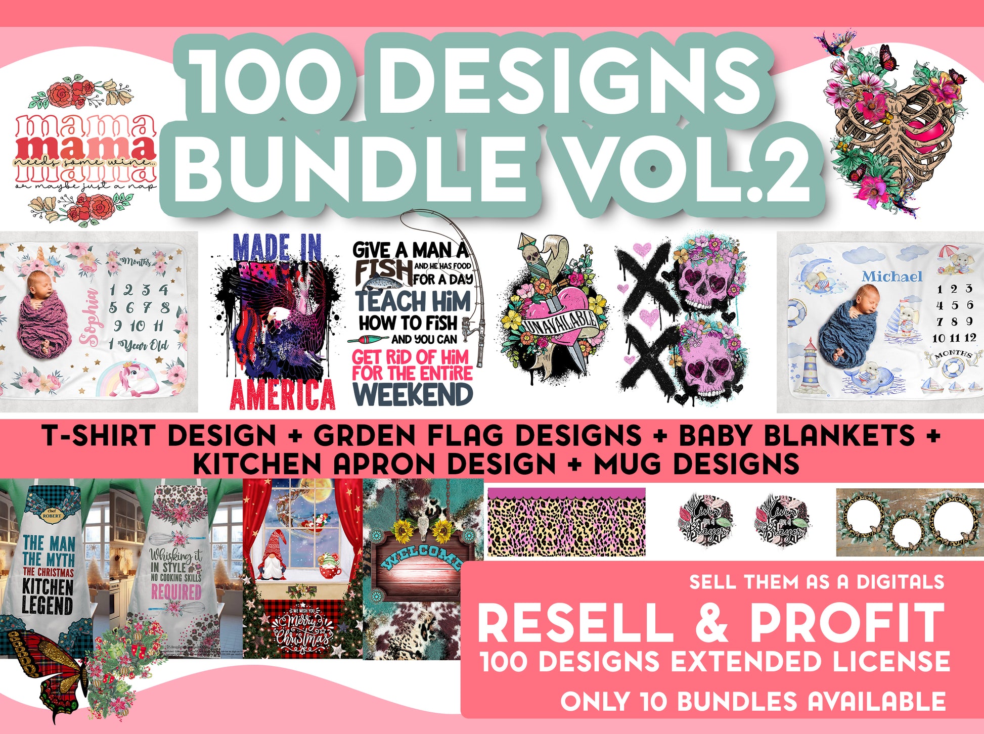100 designs Exclusive Bundle VOL.2 Digital Designs with full commercial License you can resell as a Digital Files (Copy)