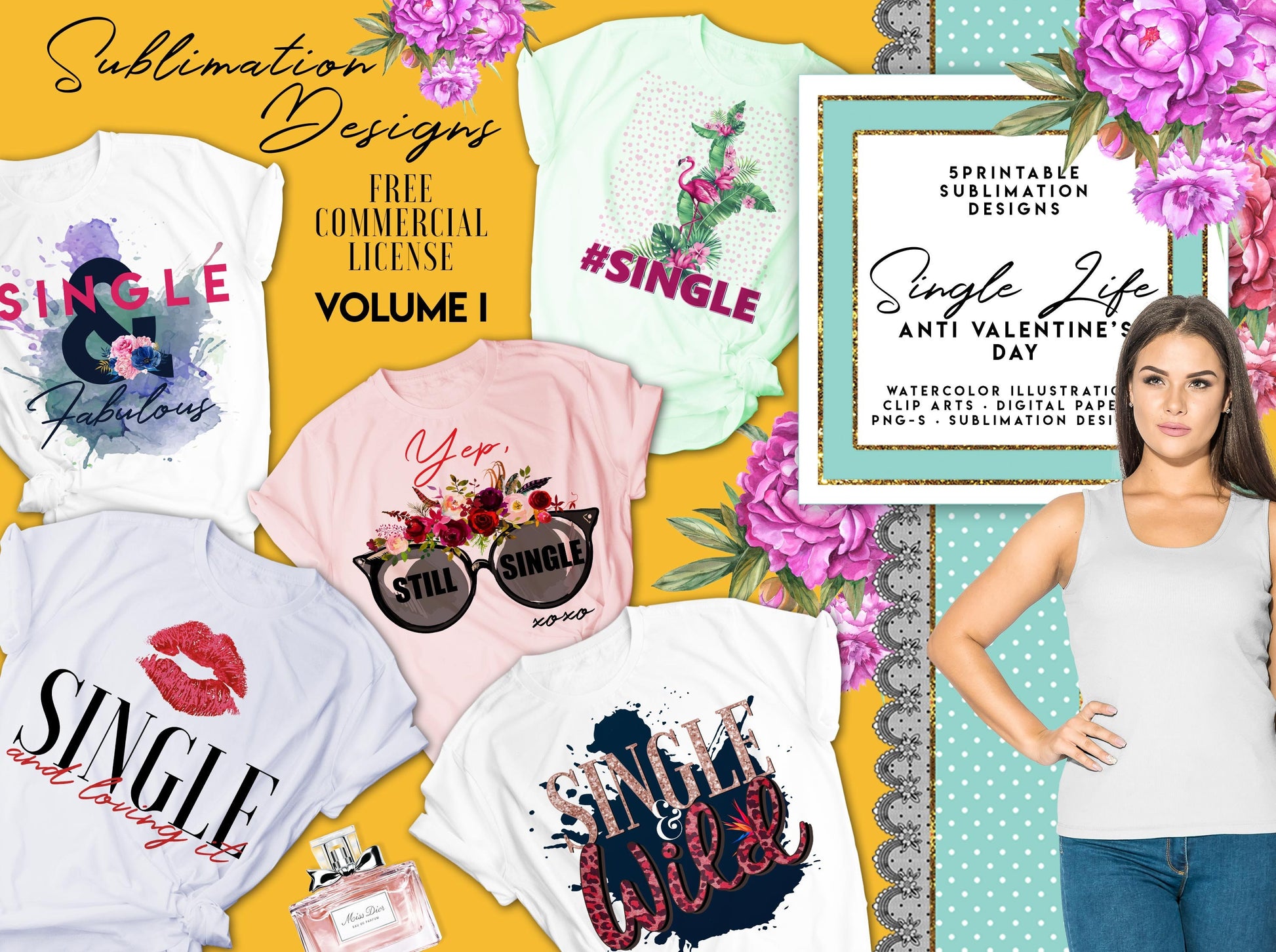 5 Anti Valentines Day T Shirt Template Designs for Sublimation Printing Single Valentines Day VOLUME I Single Valentines T Shirt Graphic