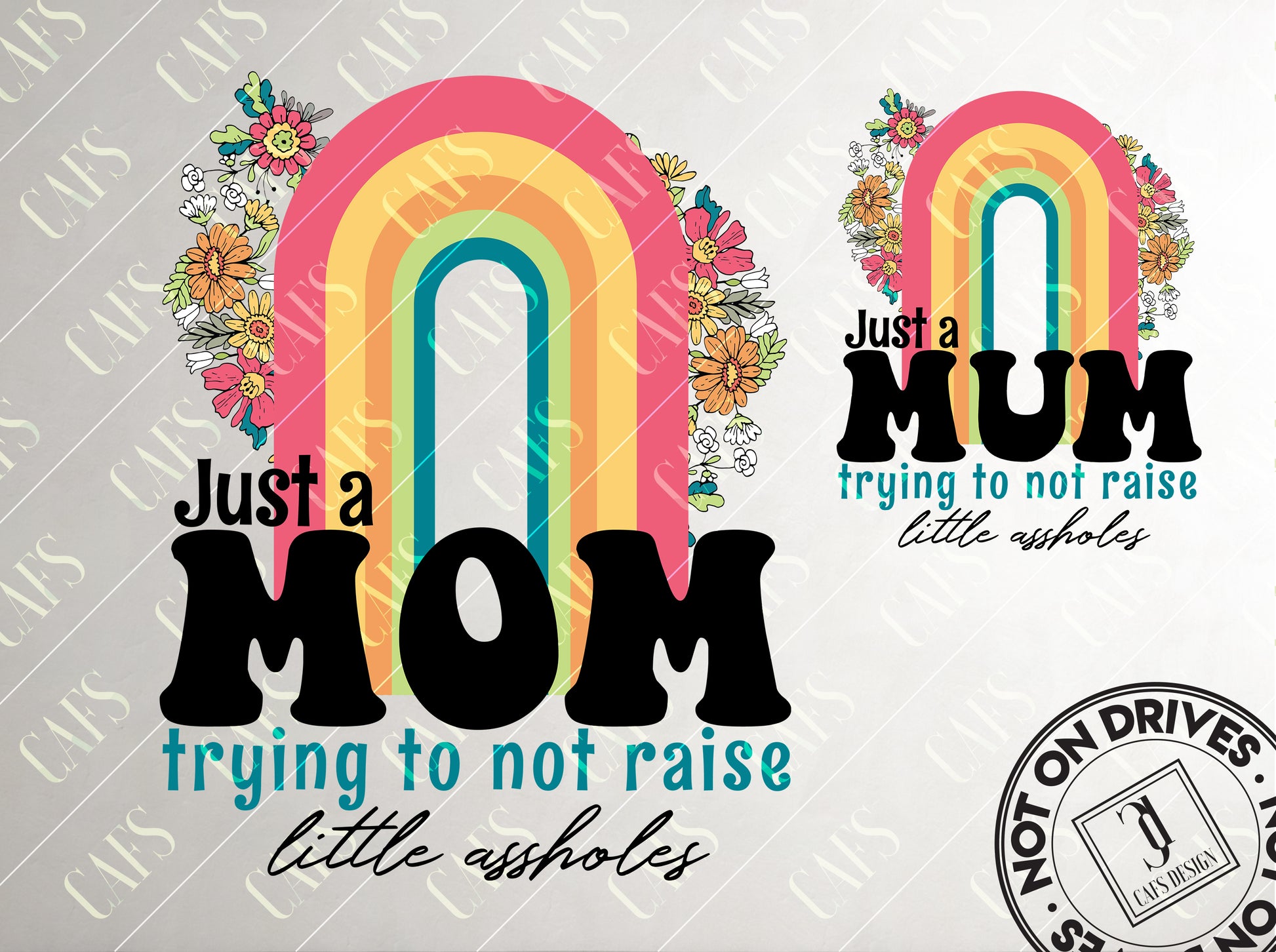 Mom Png Just a Mom trying to not raise little a**holes Sublimation Design Retro Mom Design Dtg Design Dtf Design MUM png Sublimation Design