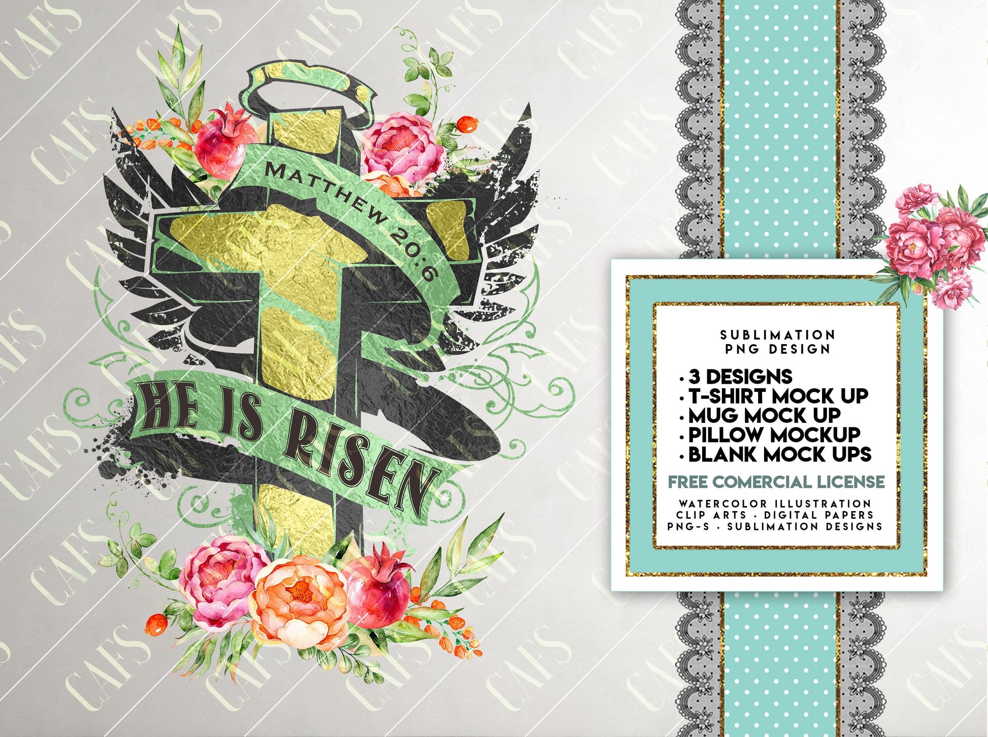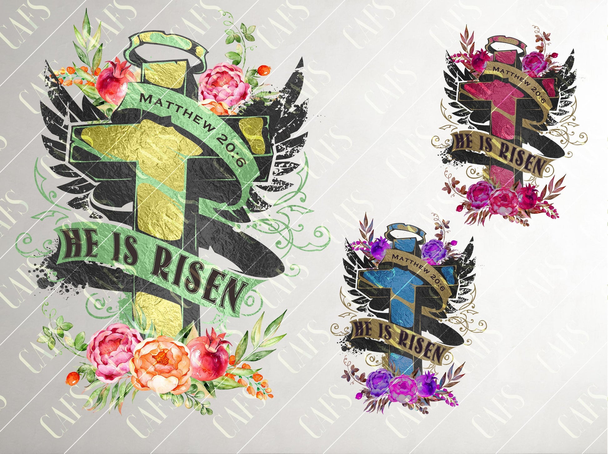EASTER CROSS Sublimation Design for Sublimation Printing - He is Risen Matthew 28:6 - Easter Sublimation template design Easter Sublimation