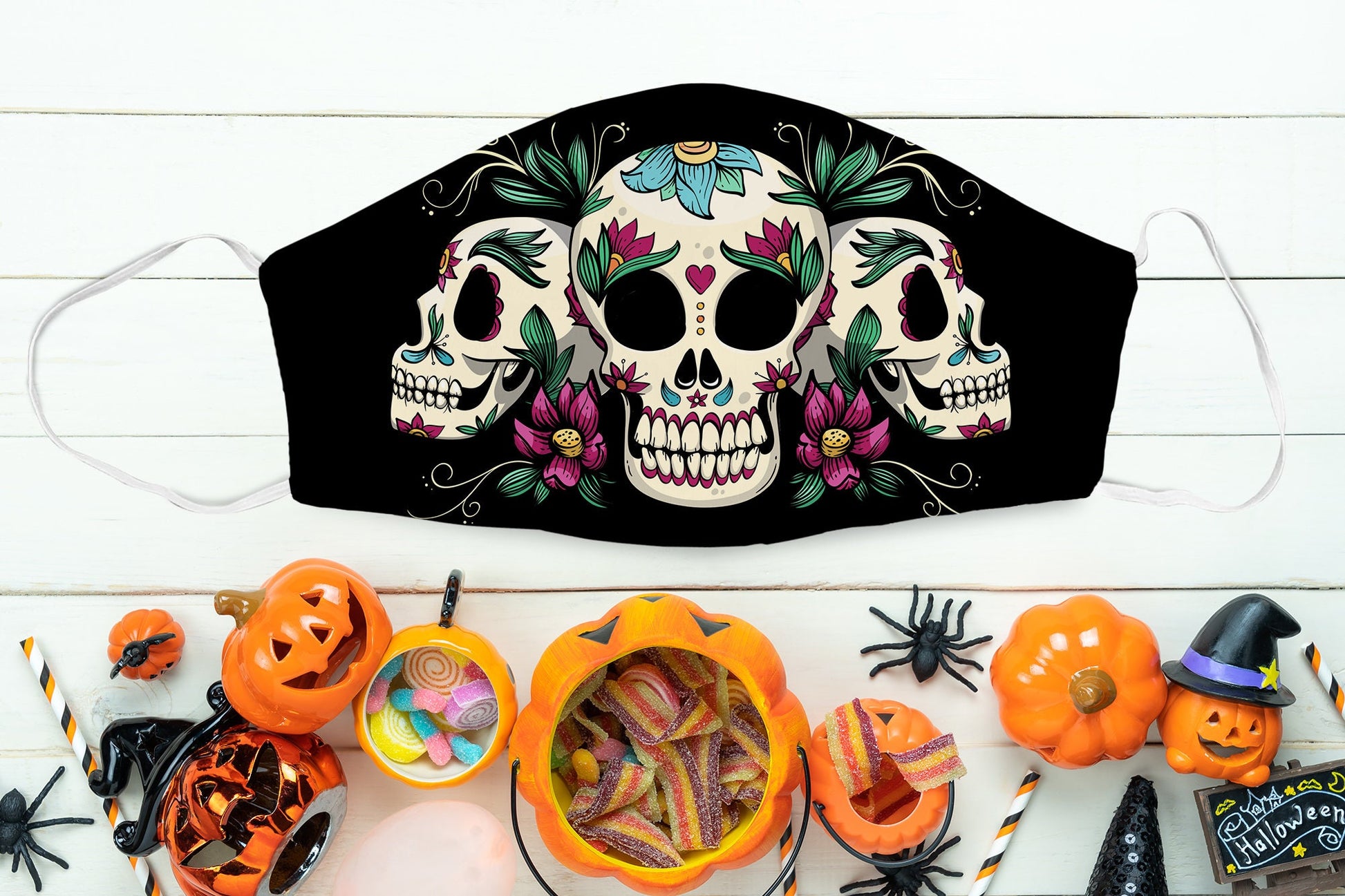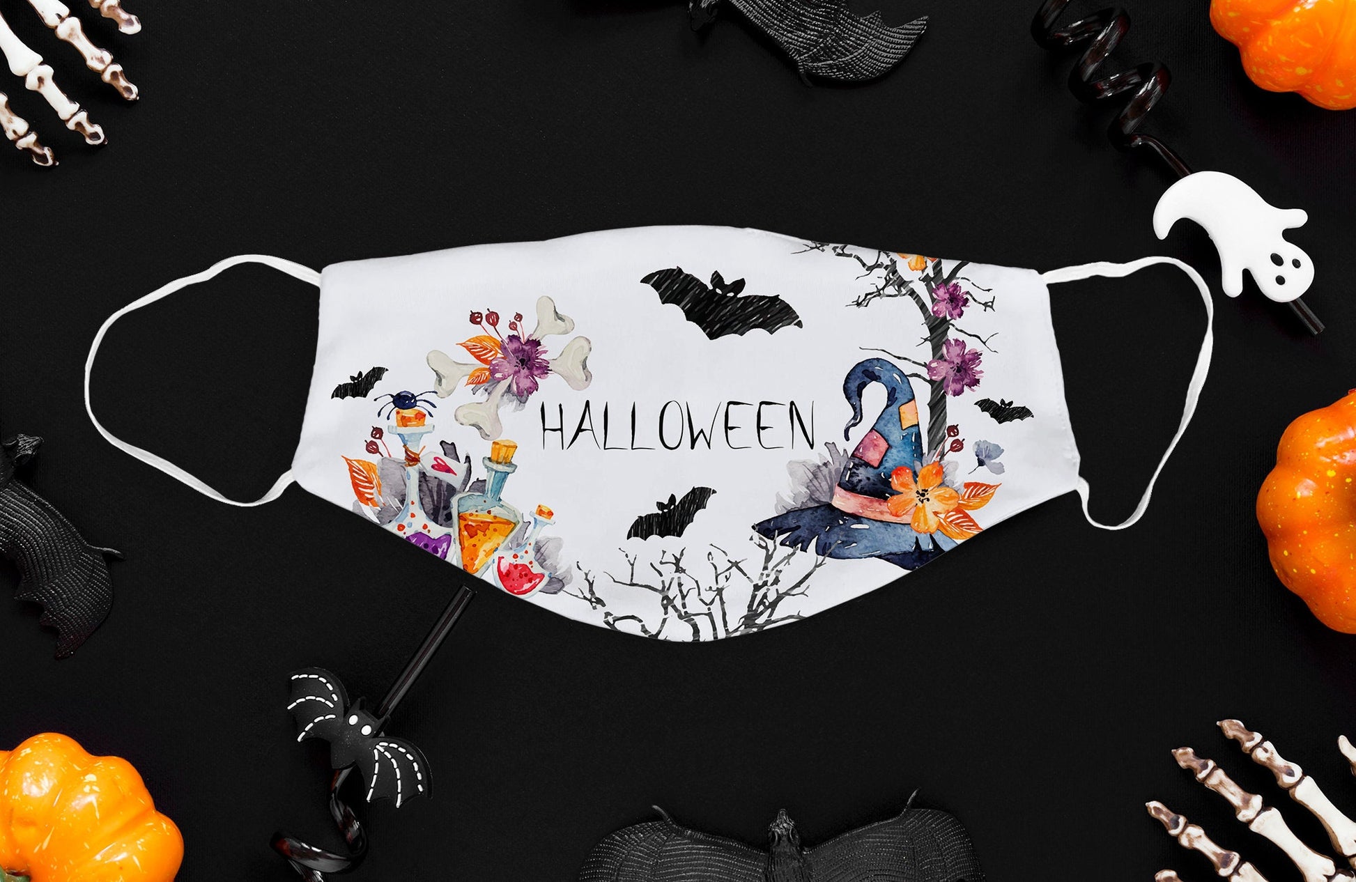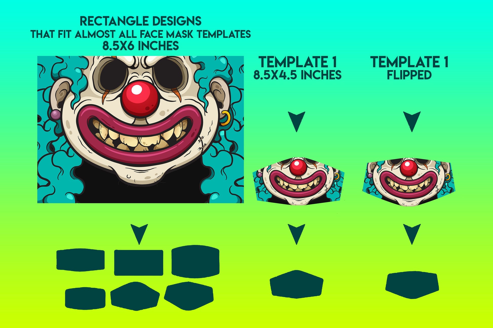 • 110 PNG files for printing (rectangle design, Mask Pointed Up, Mask Pointed Down) + BLANK Mock Ups In this Bundle we included Halloween Face Mask designs!