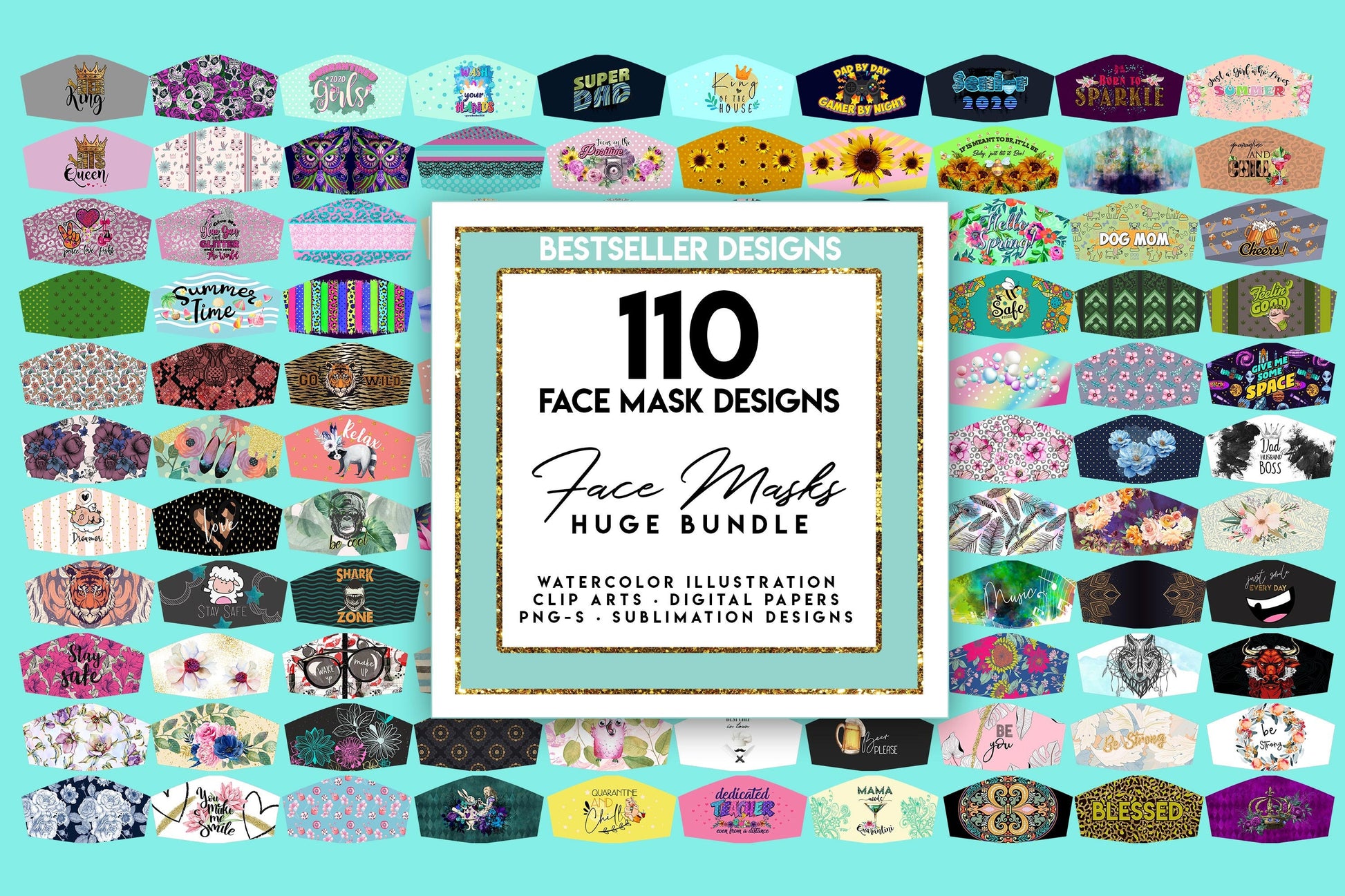 Face Mask Designs HUGE BUNDLE Facemask Sublimation Design Template Bestseller Face Mask Designs Templates Face Mask Design Bundle 110 Png-s