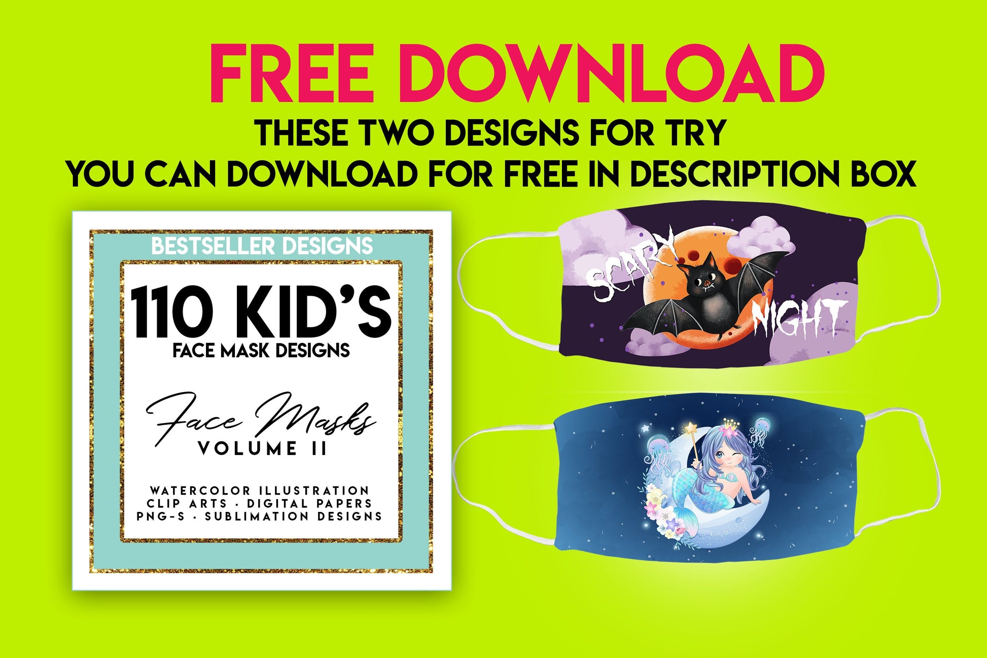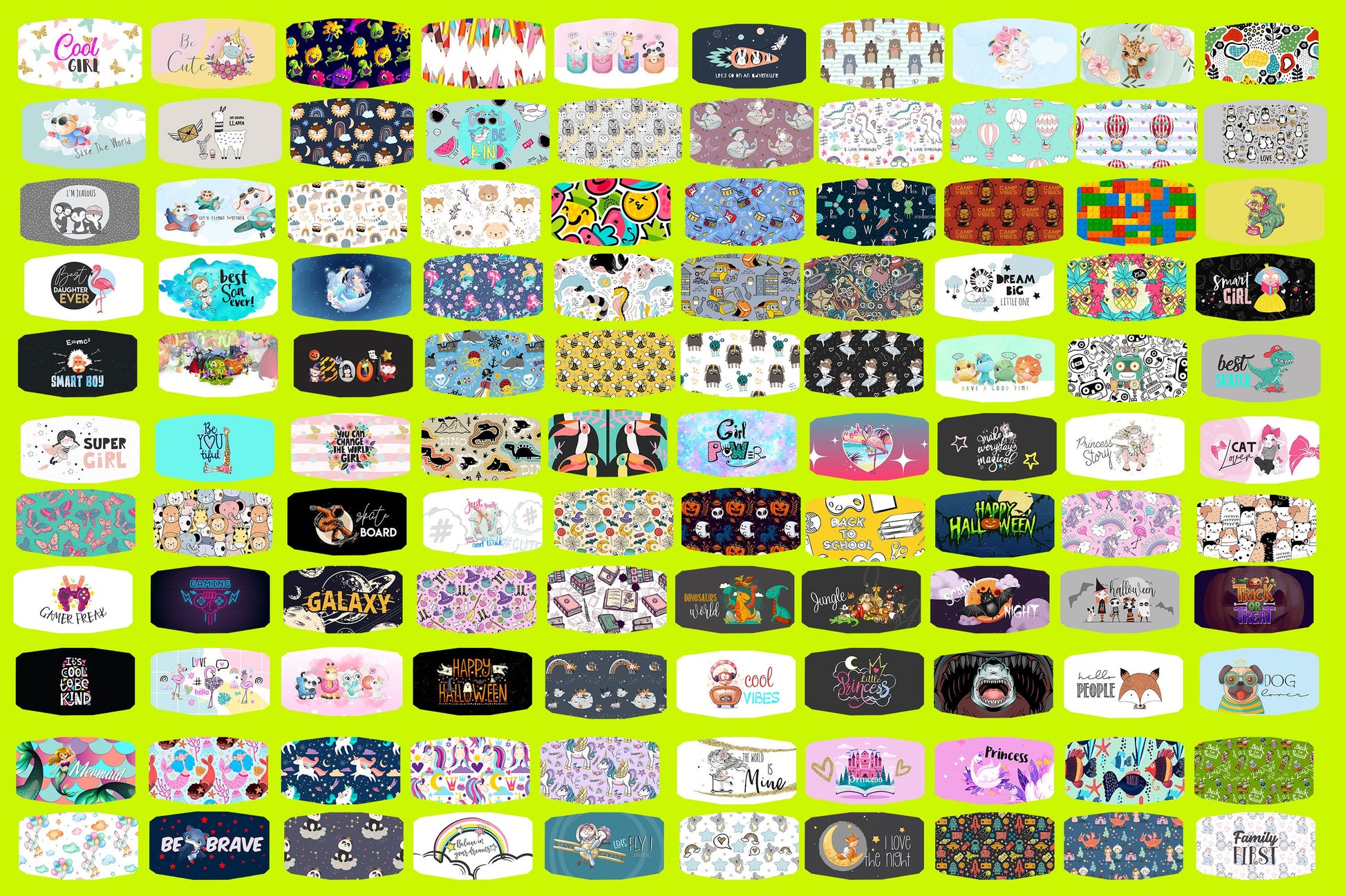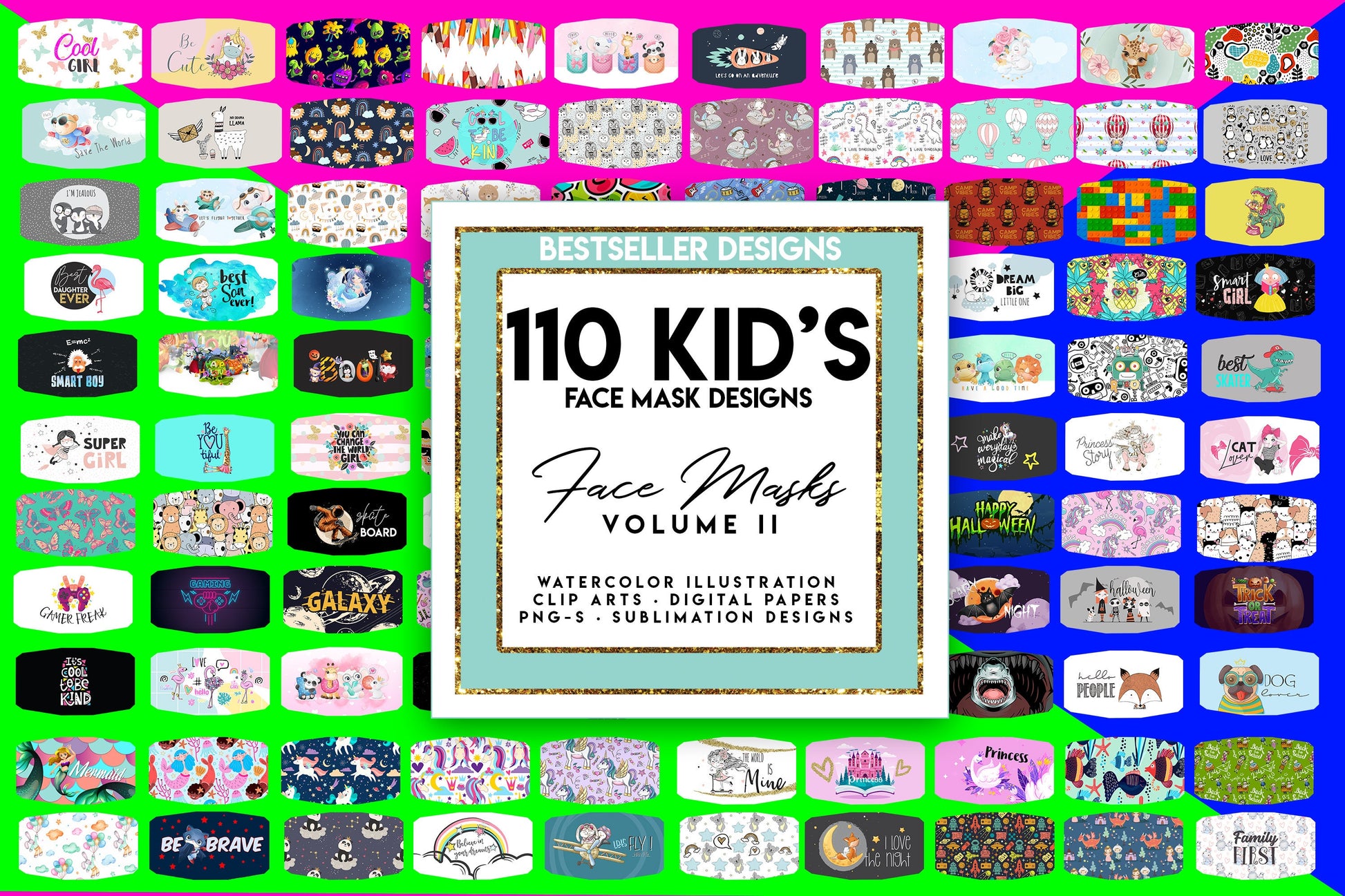 Kids Face Mask Designs HUGE BUNDLE Facemask Sublimation Designs 110 Png