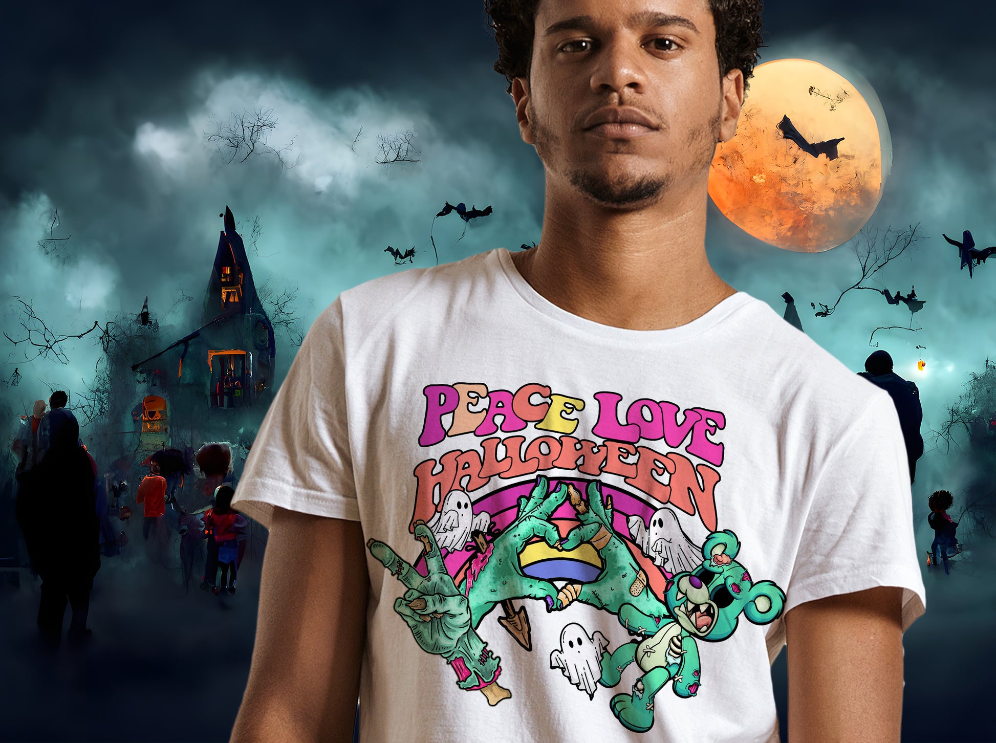 Peace Love Halloween Png Sublimation Design, Dtg and Dtf Halloween Digital Design