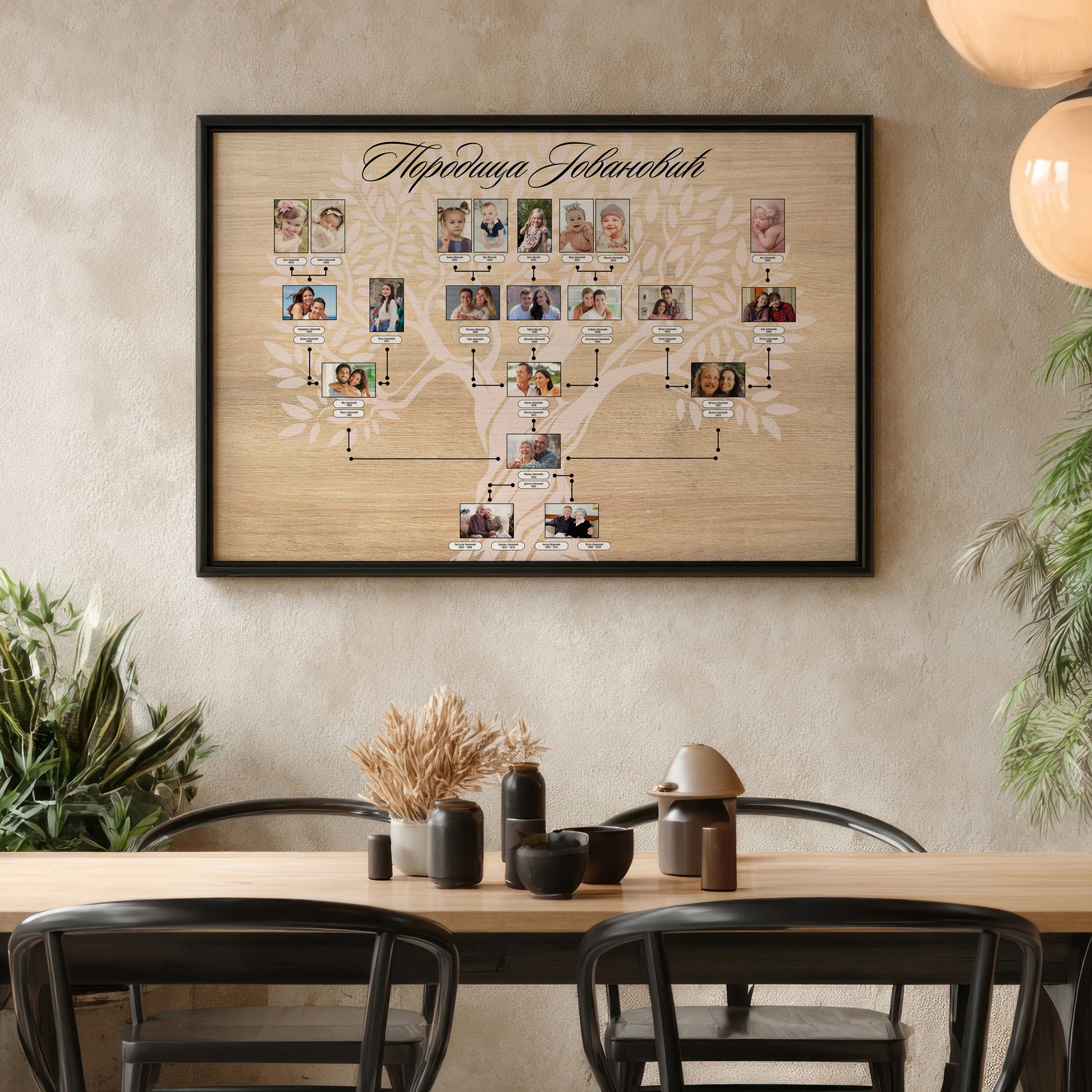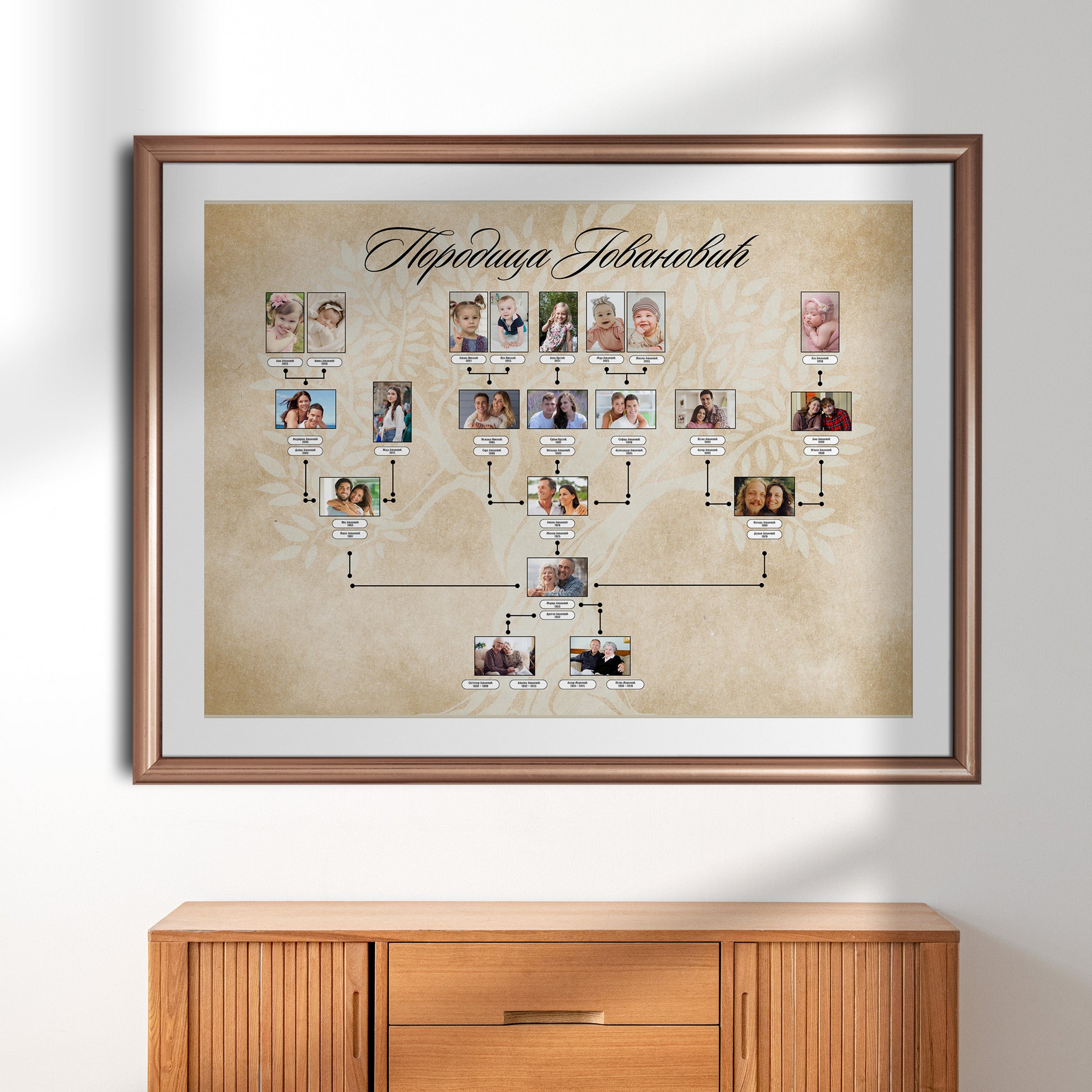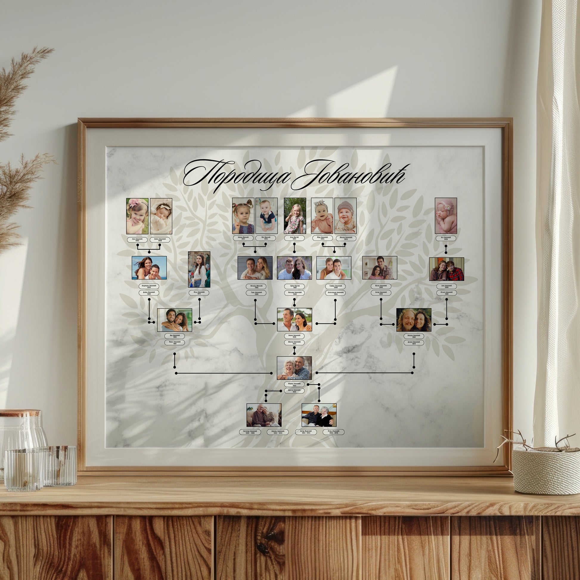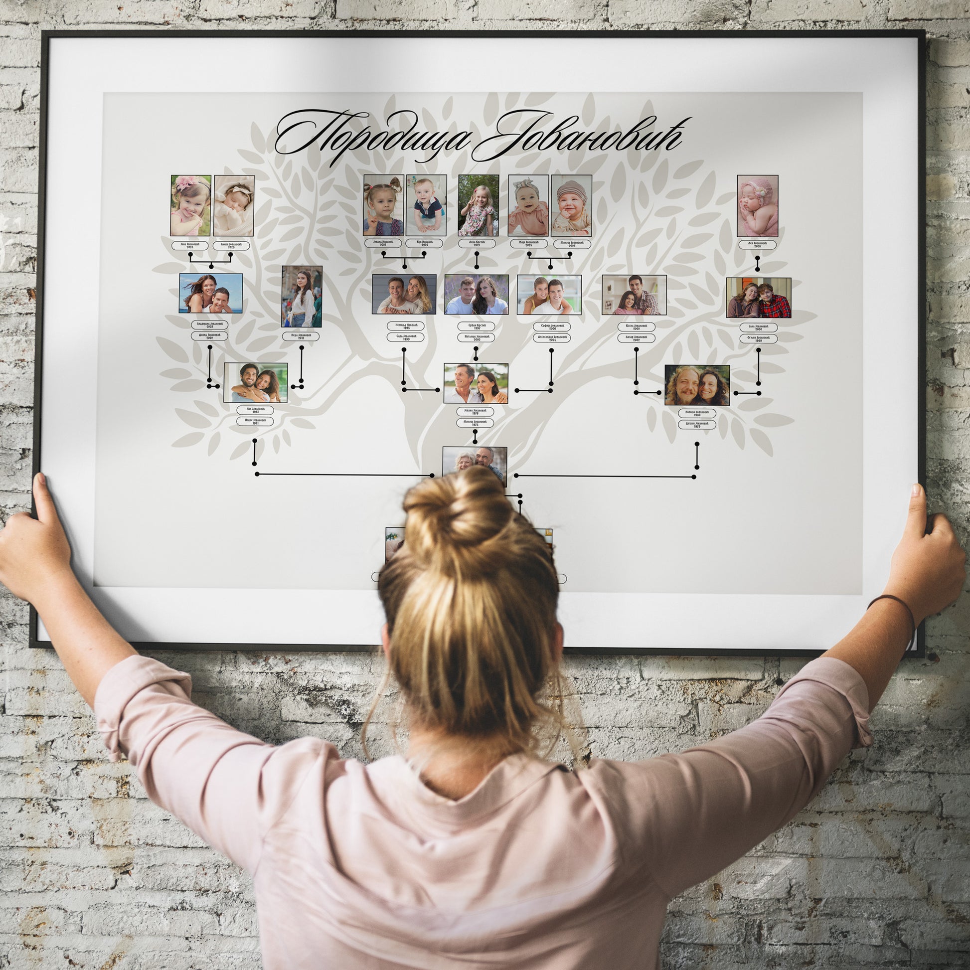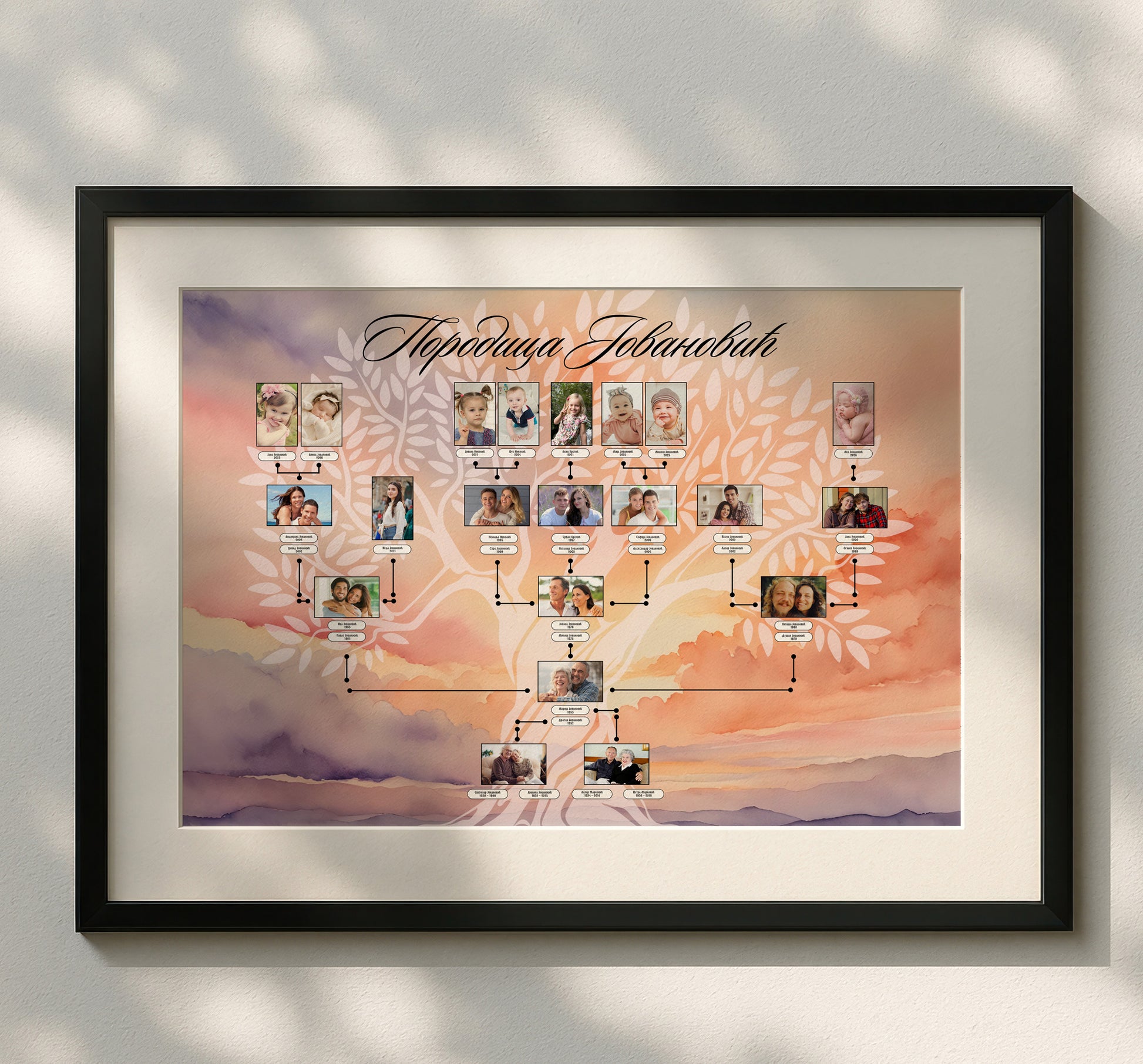 Nakon štampe, izaberite ram koji se uklapa u vaš enterijer – od klasičnih drvenih ramova do modernih minimalističkih okvira – kako bi vaše porodično stablo zasijalo i postalo prava dekoracija vašeg doma.