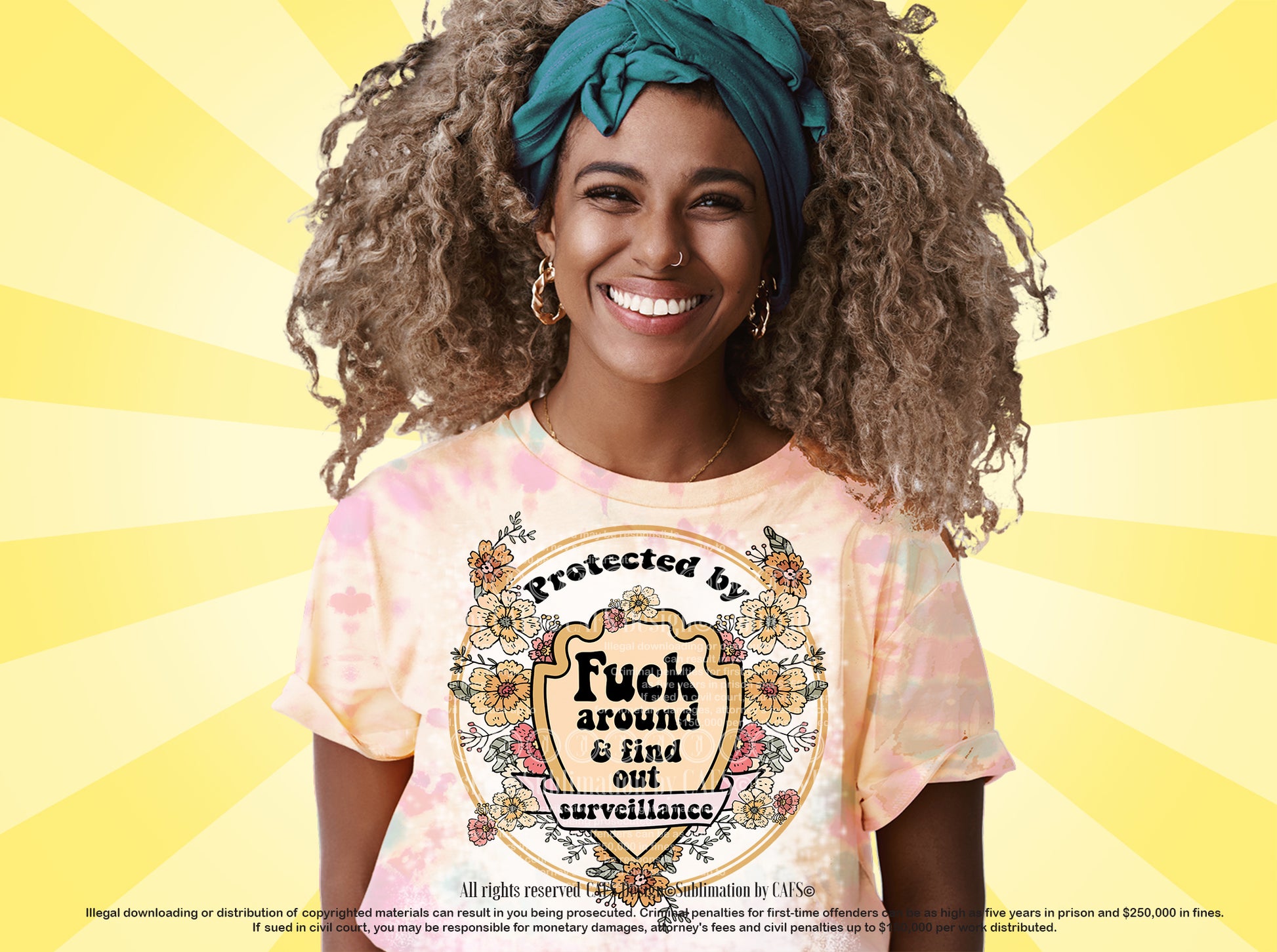 Protected by F**k Around and find out Surveillance Png Sublimation Design Dtg and Dtf png Design