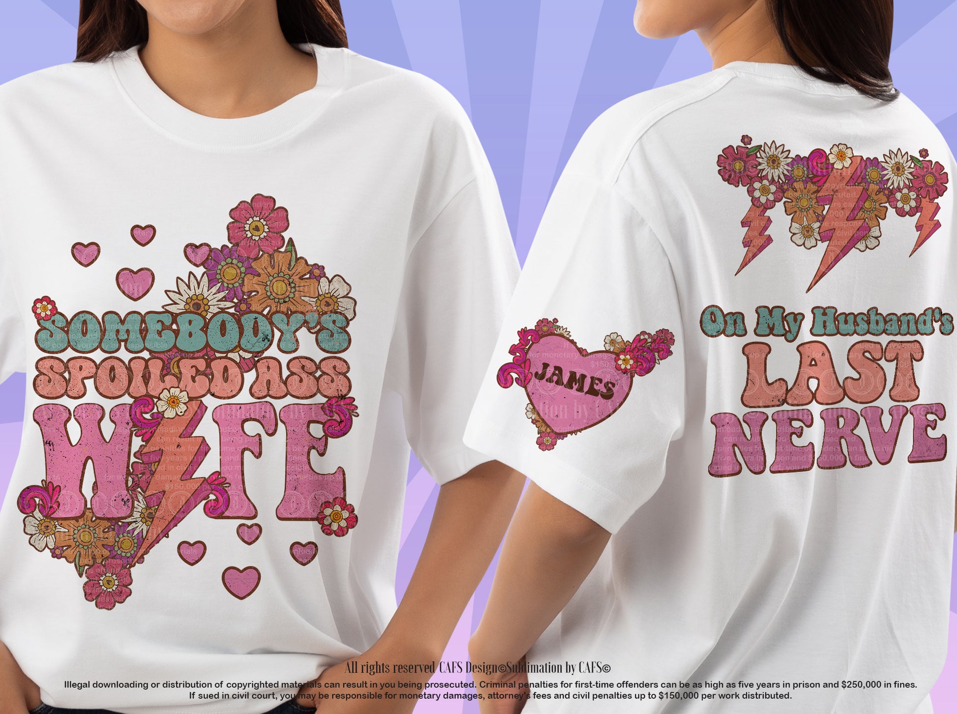 Spoiled Wife Png Sublimation Design Front Back Sleeve Png Design On My Husband's Last Nerve Png Dtg and Dtf Digital Design