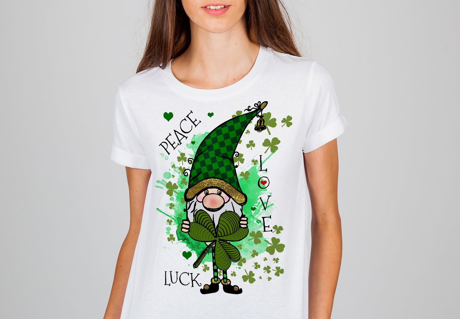 GNOME Peace Love Luck SHAMROCK DESIGN Sublimation, Digital Design, PNG, Sublimation Design Download, Sublimation Template Mug, Sublimation Template T-shirt, Sublimation Tempalte Pillow, Sublimation Desagn Bags, etc.