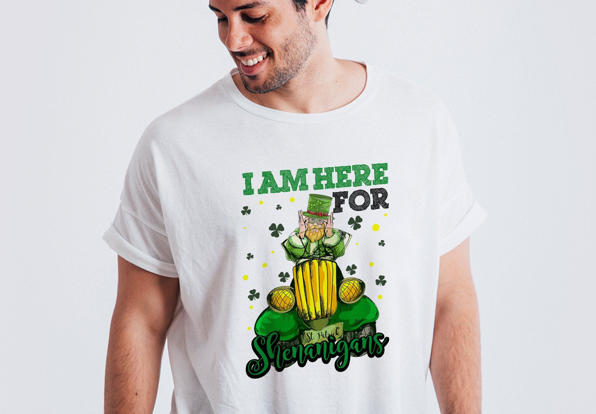 St. Patricks Day - Here for Shenanigans - Sublimation Digital Design PNG Design Download, Sublimation Template T-shirt, Mug, Pillow, Bag