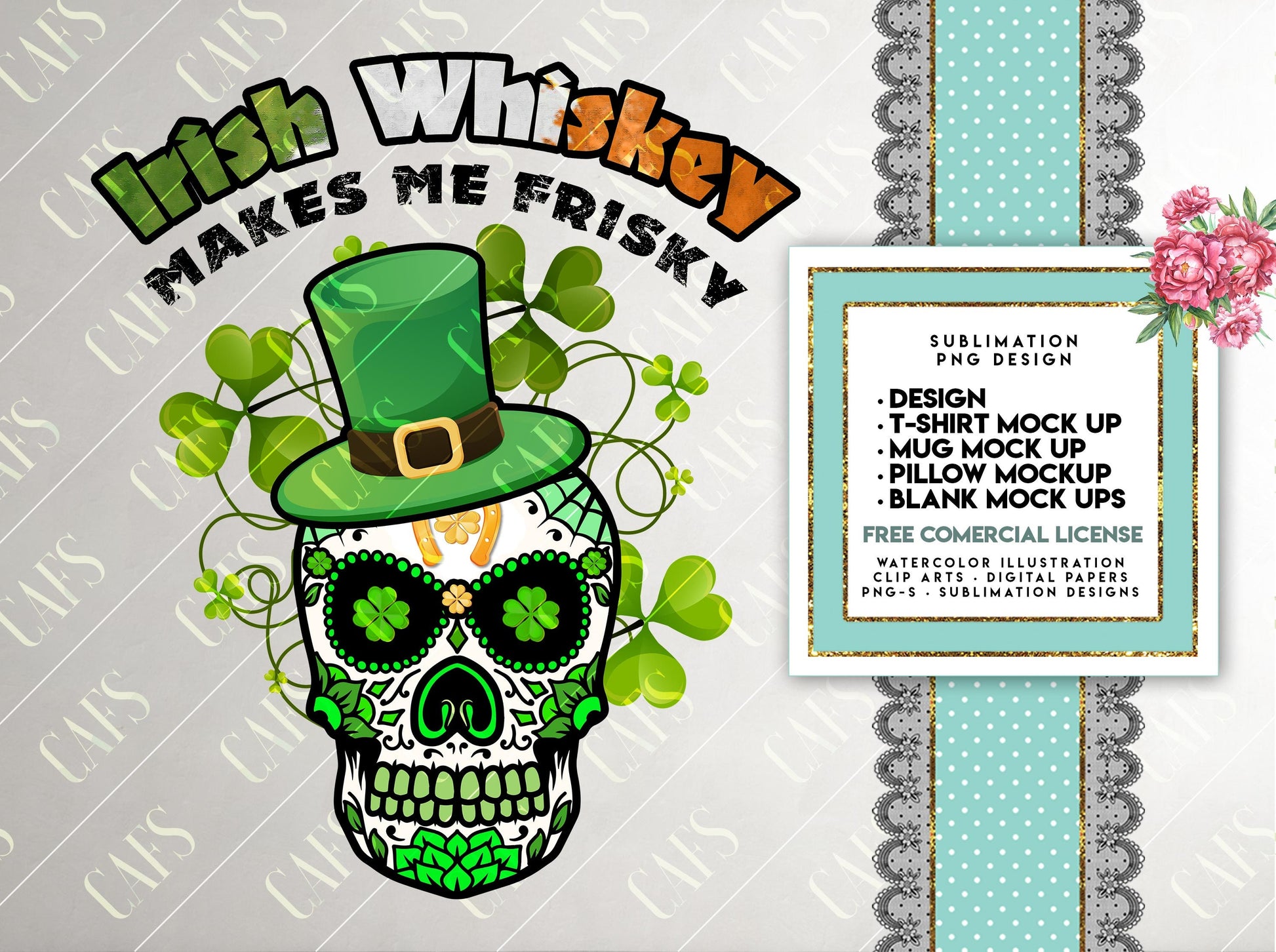 St. Patricks Day - Irish Whiskey Makes Me Frisky - Sublimation Digital Design PNG Design Download, Sublimation Template