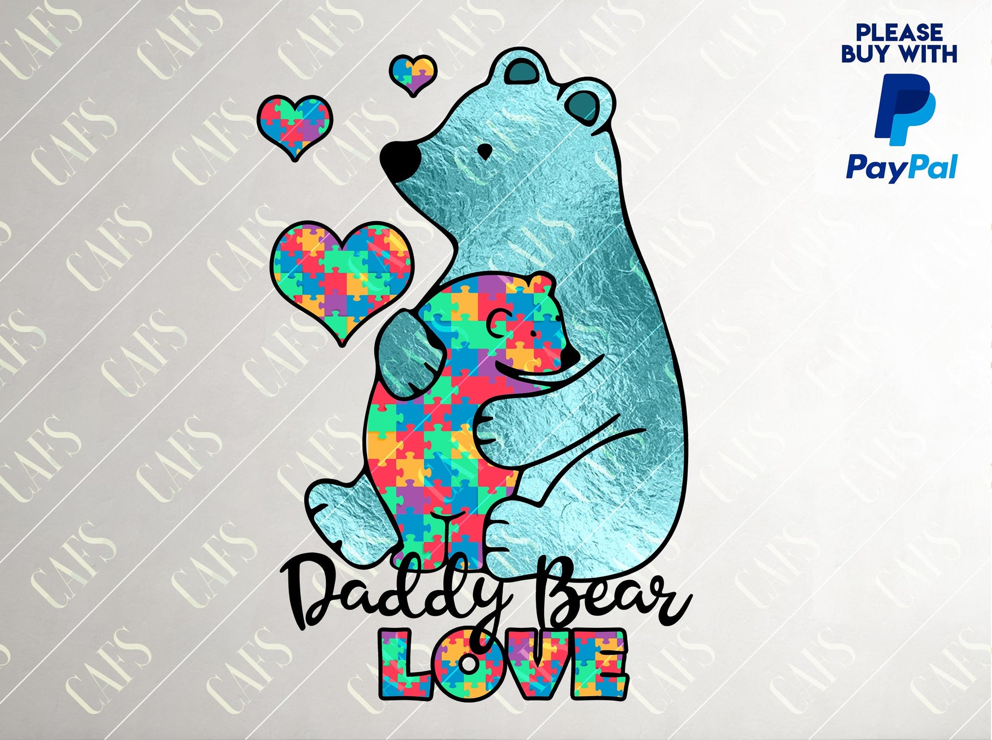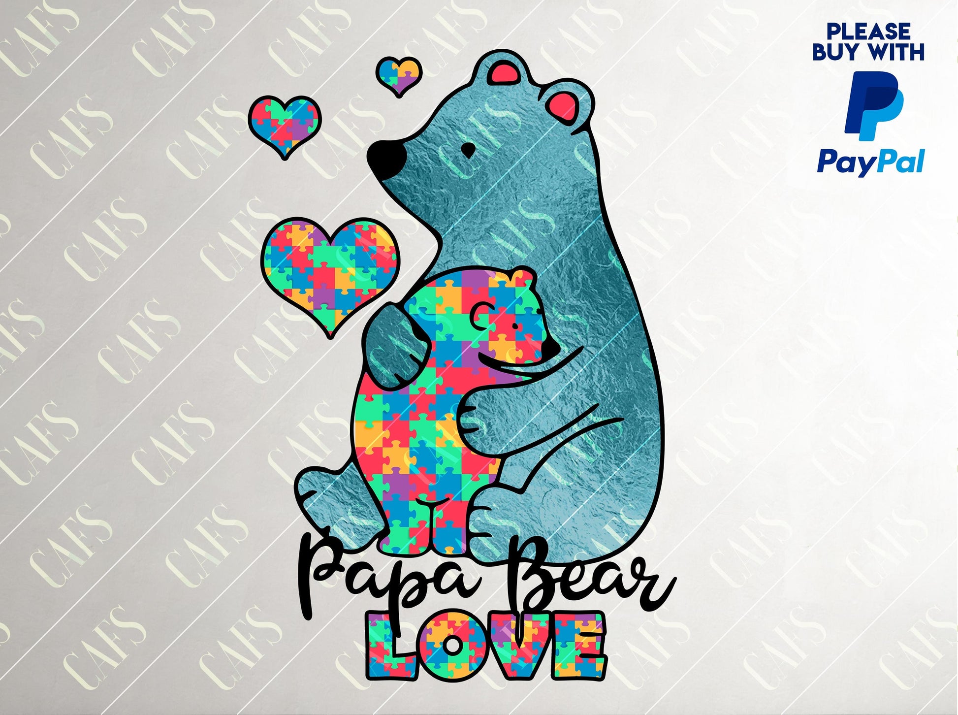 Sublimation Design AUTISM Papa Bear LOVE Sublimation Design Template Digital AUTISM Design Png Sublimation Design Autism Father's Day Design