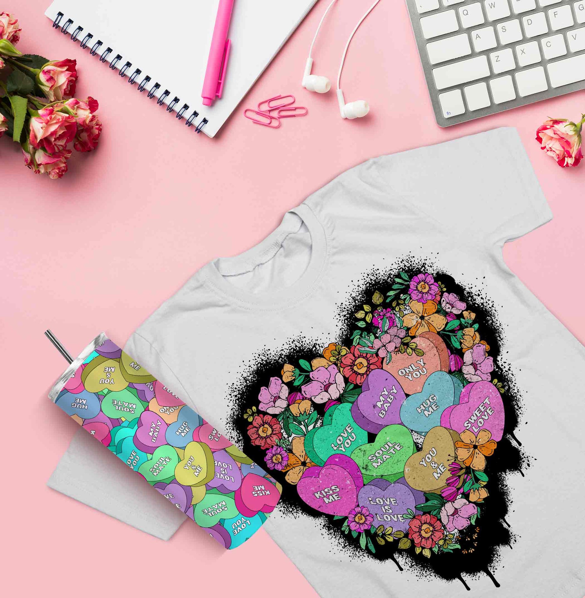 Valentines Day Png Conversation Hearts Tumbler Design
